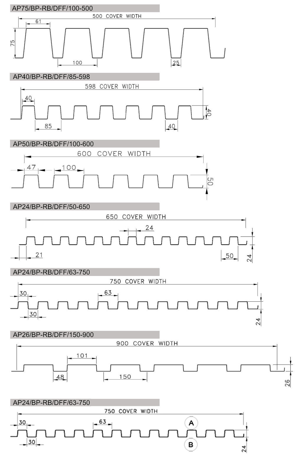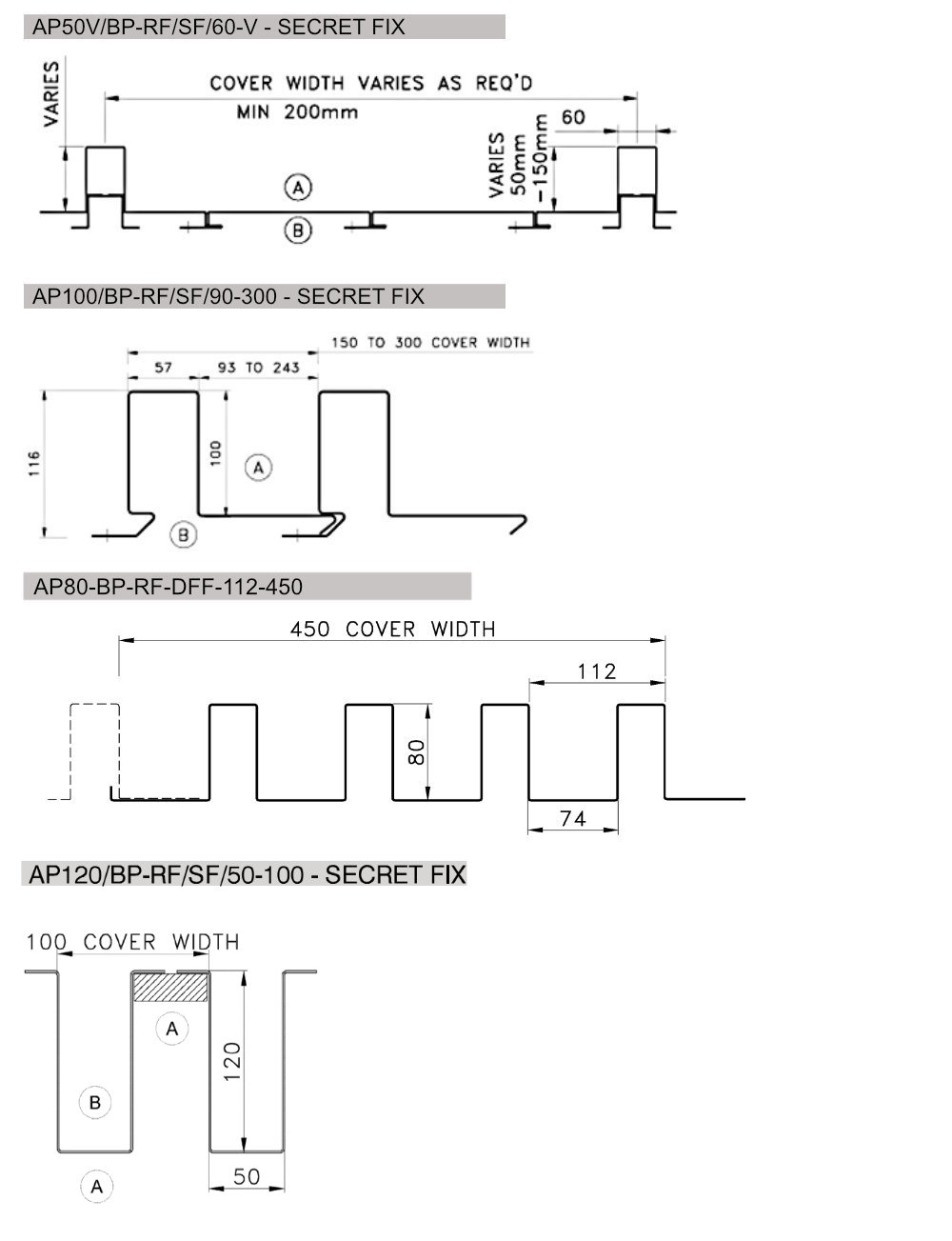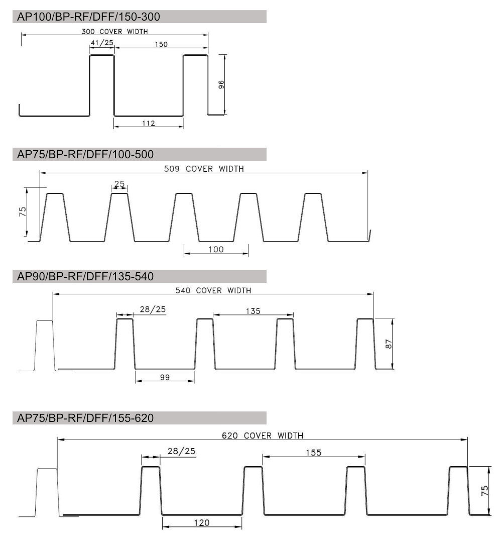 Custom Bespoke profiles come in six ranges (see drawings below for details):